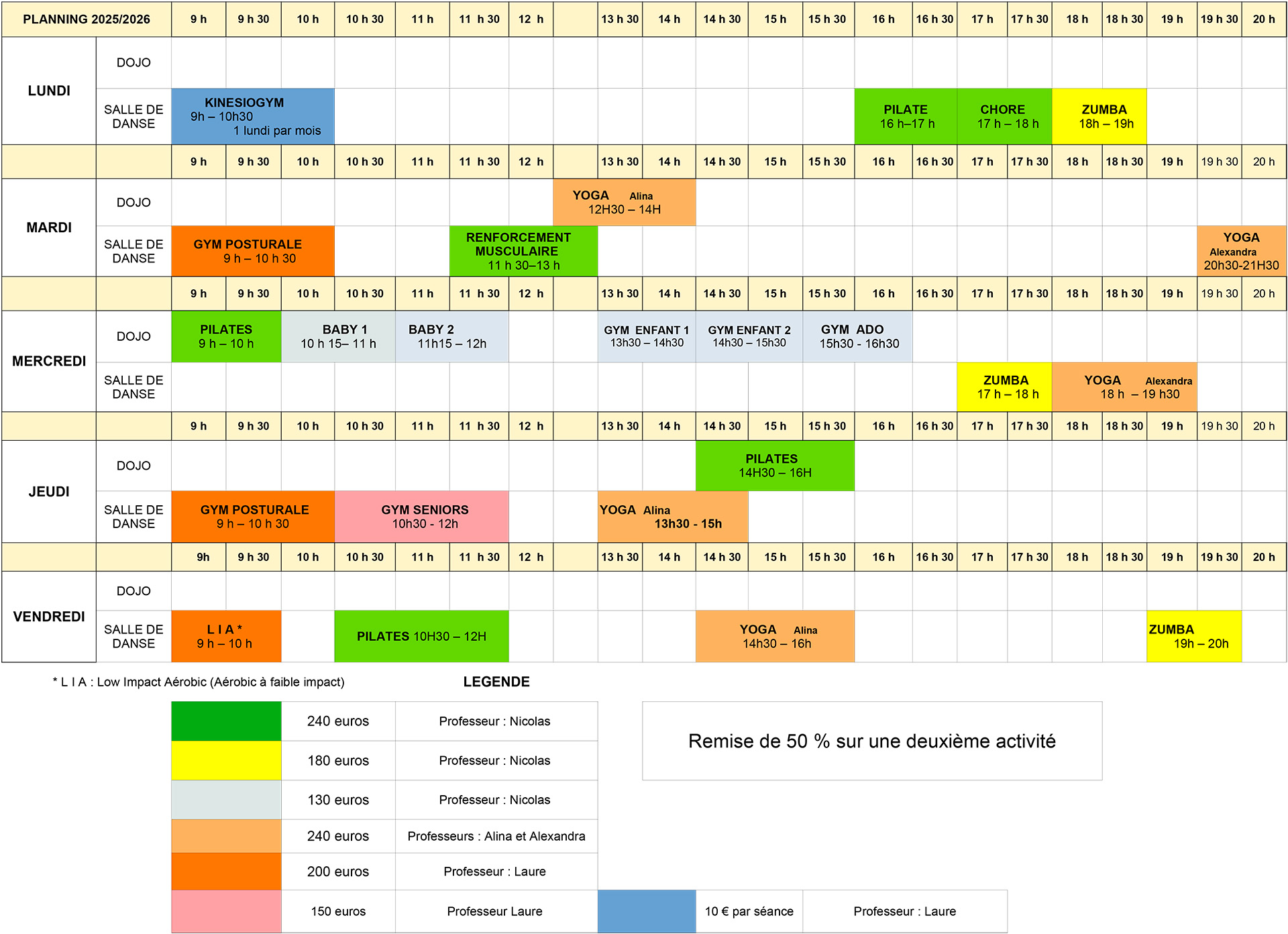 Les tarifs comprennent : la cotisation à l’activité + l’adhésion annuelle